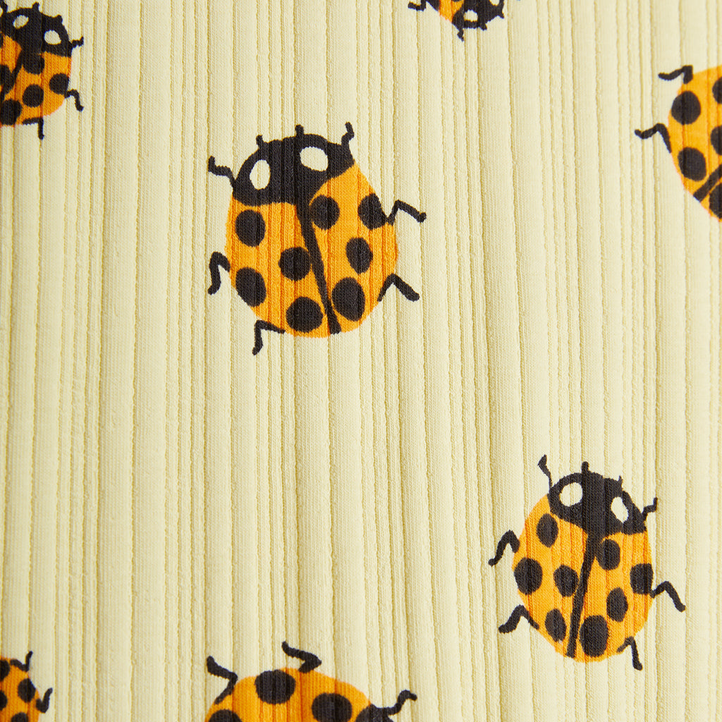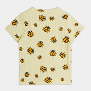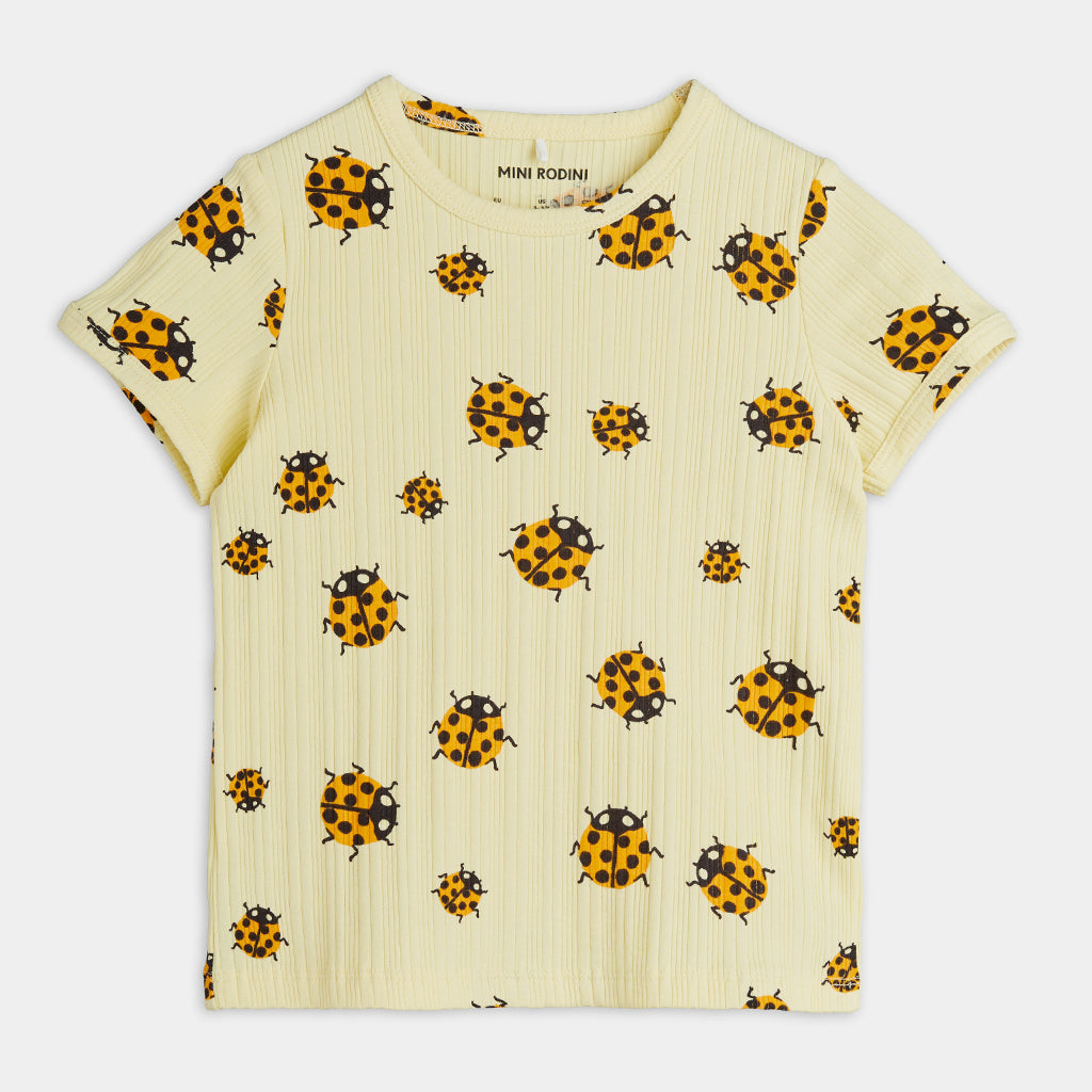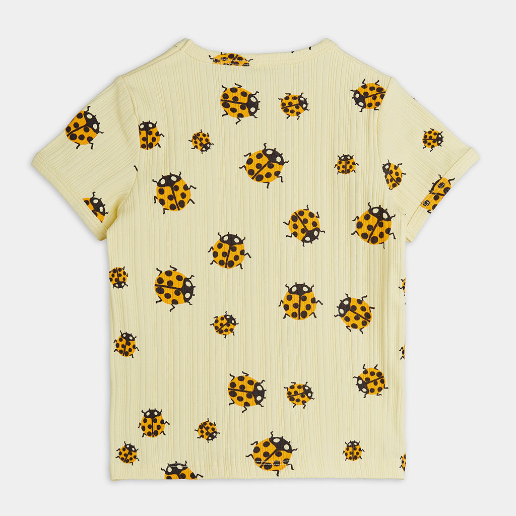 Hellgelbes T-Shirt mit kleinen, glücksbringenden Marienkäfern.
