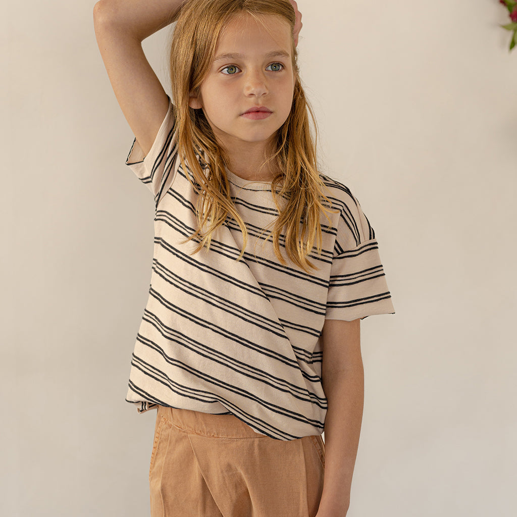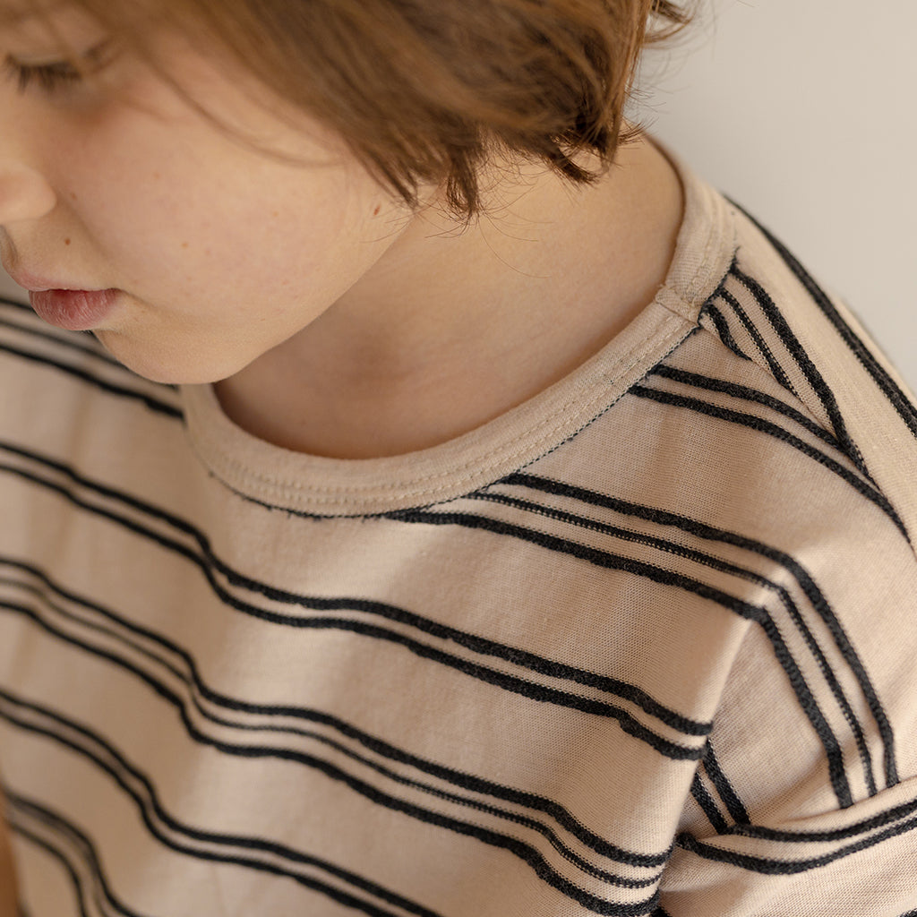 Oversize T-Shirt von Phil & Phae aus einem luftigen, strukturierten Streifenjersey, perfekt für Frühling und Sommer. Tasche auf der Rückseite.