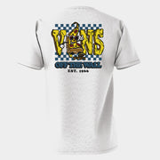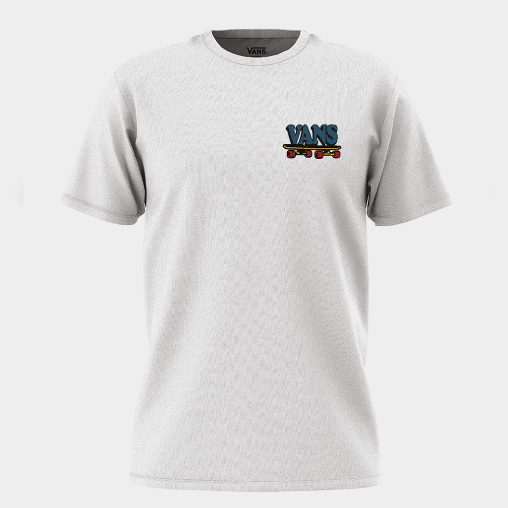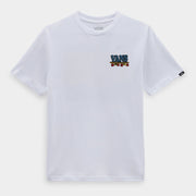 Weisses T-Shirt mit kleinem Druck vorne und Vans Logo mit Pizza Slice auf dem Rücken.