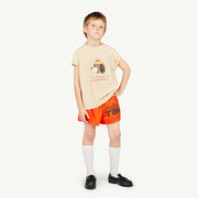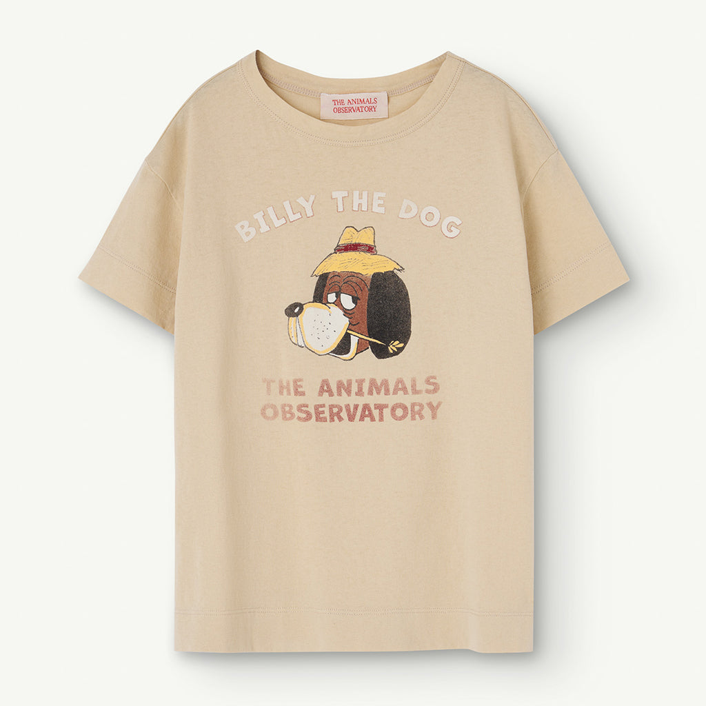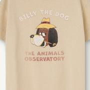 Beiges T-Shirt von The Animals Observatory mit freundlichem Billy the Dog Druck vorne.