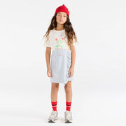 Das Model ist 132 cm gross und trägt Grösse 8 Jahre.