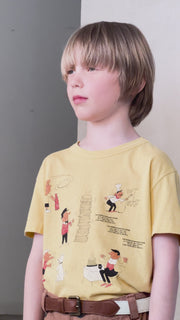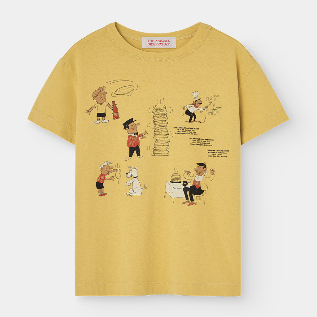 Gelbes T-Shirt von The Animals Observatory mit witzigem Restaurant Print.