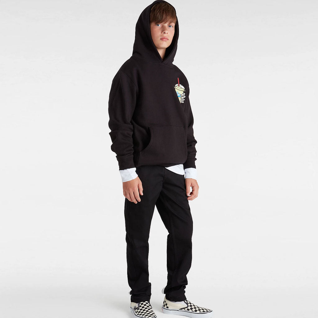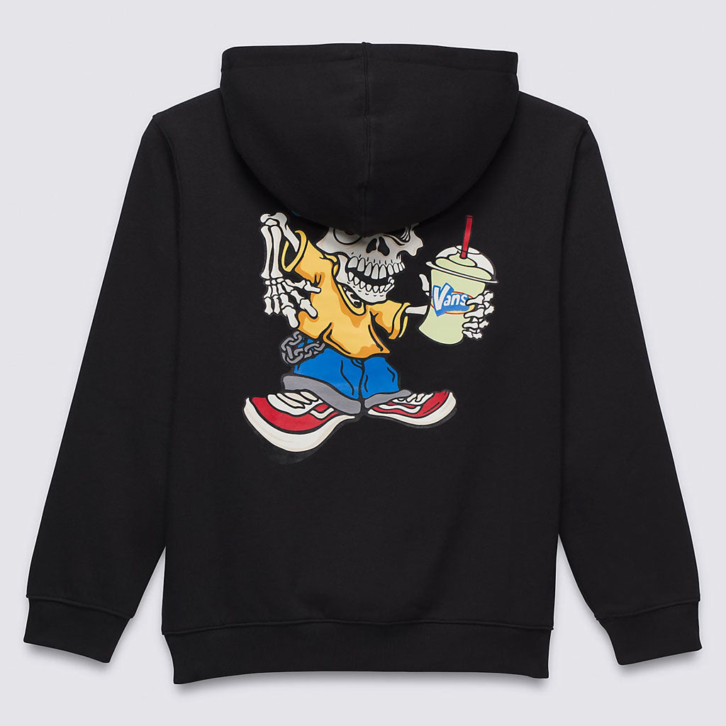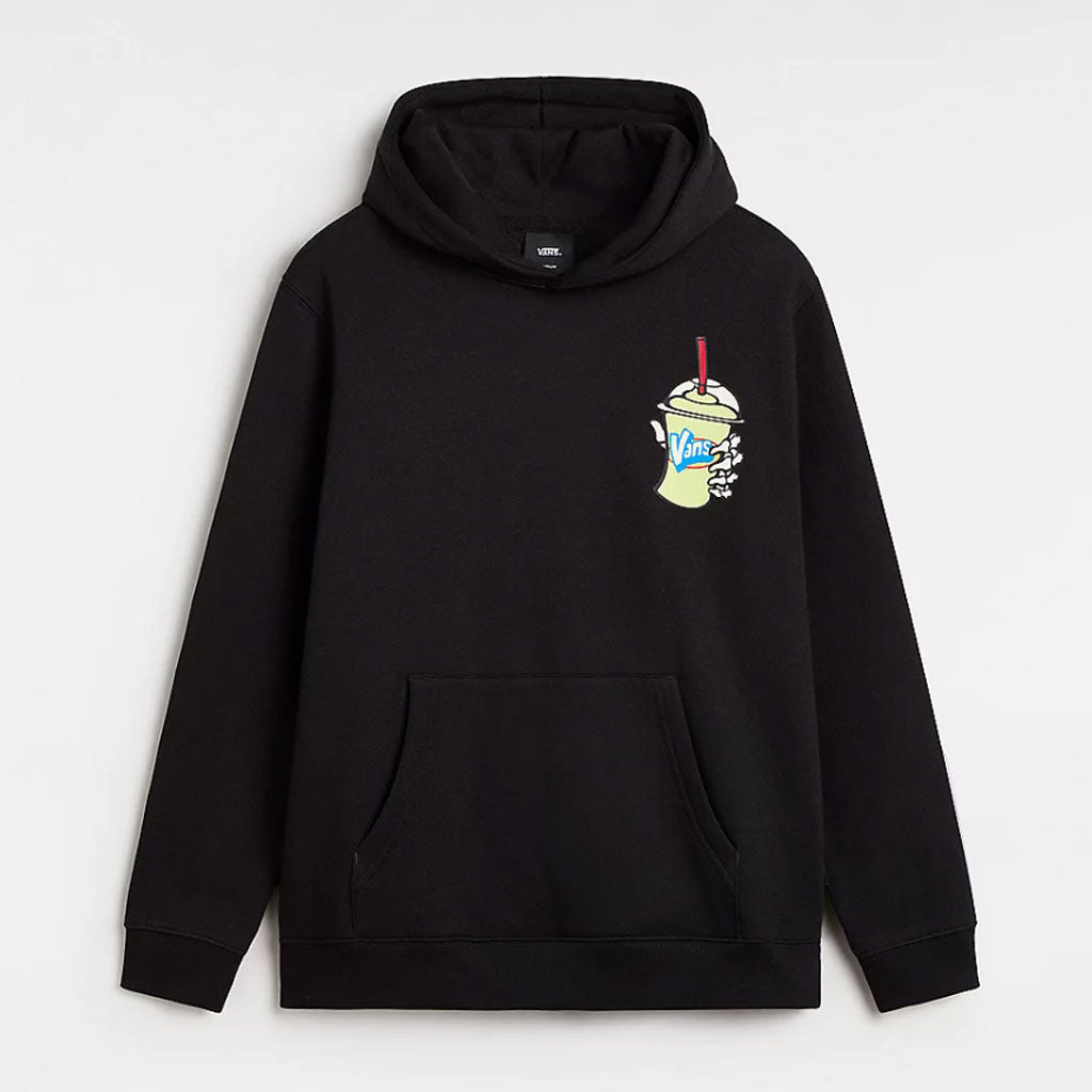 Schwarzer Vans Hoodie mit Print vorne und hinten.