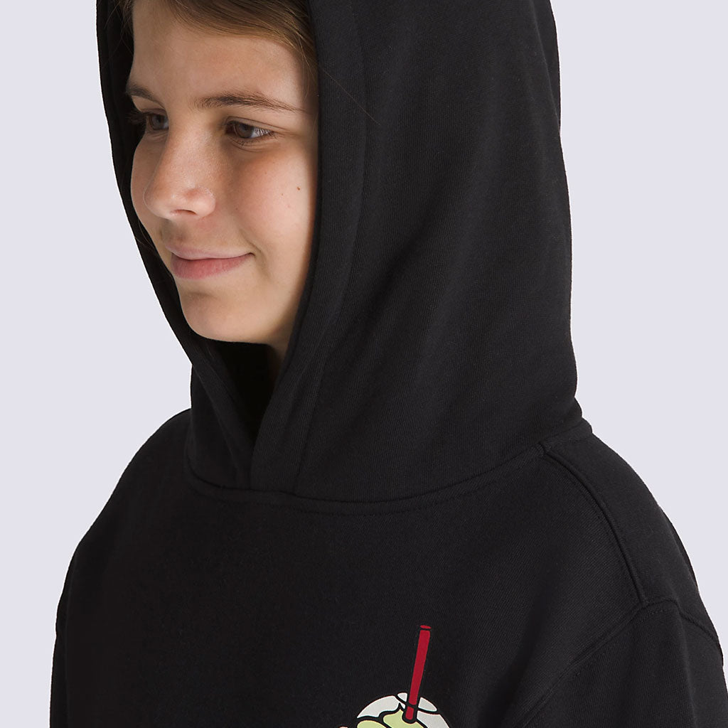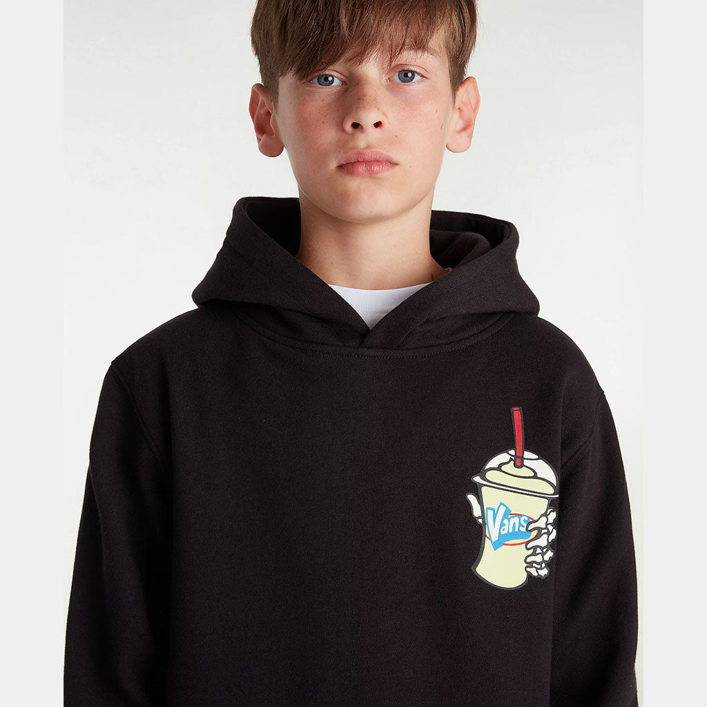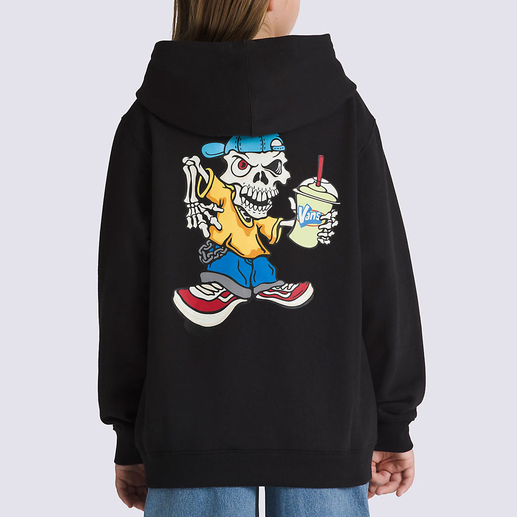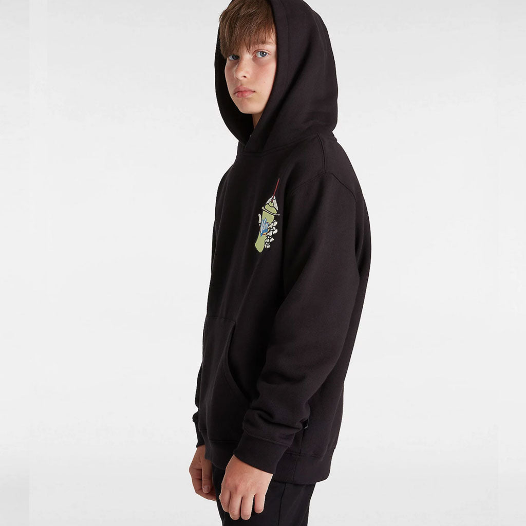 Schwarzer Vans Hoodie mit Print vorne und hinten.