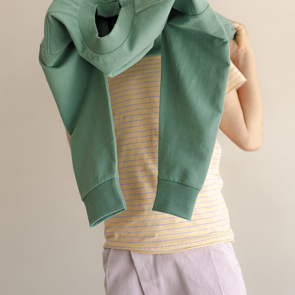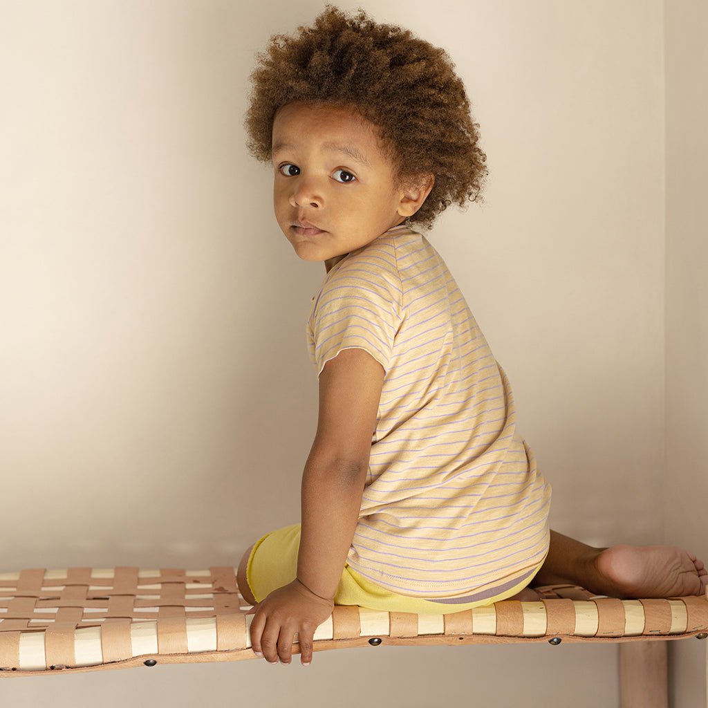 Ein T-Shirt Favorit in jeder Saison: schlicht in der Form, aber mit perfekter Passform. Die rauen Details und Streifen machen dieses Basic zu etwas Besonderem.