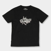 Schwarzes T-Shirt mit weissem Volcom Print auf der Brust.
