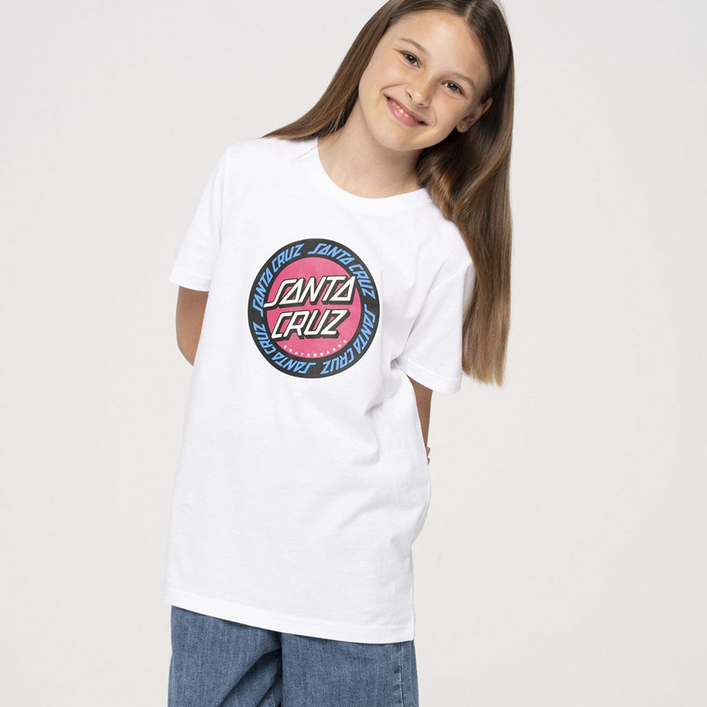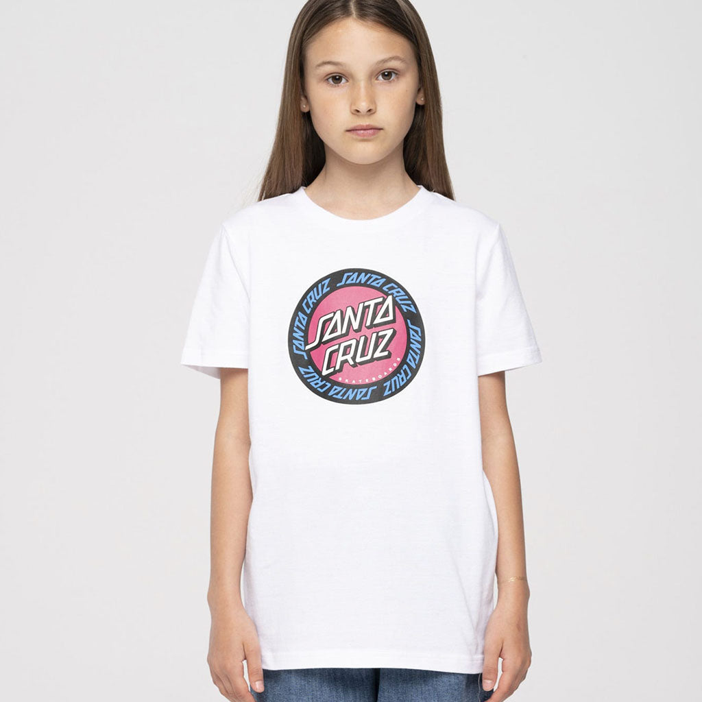 Weisses T-Shirt mit Santa Cruz Dot vorne.