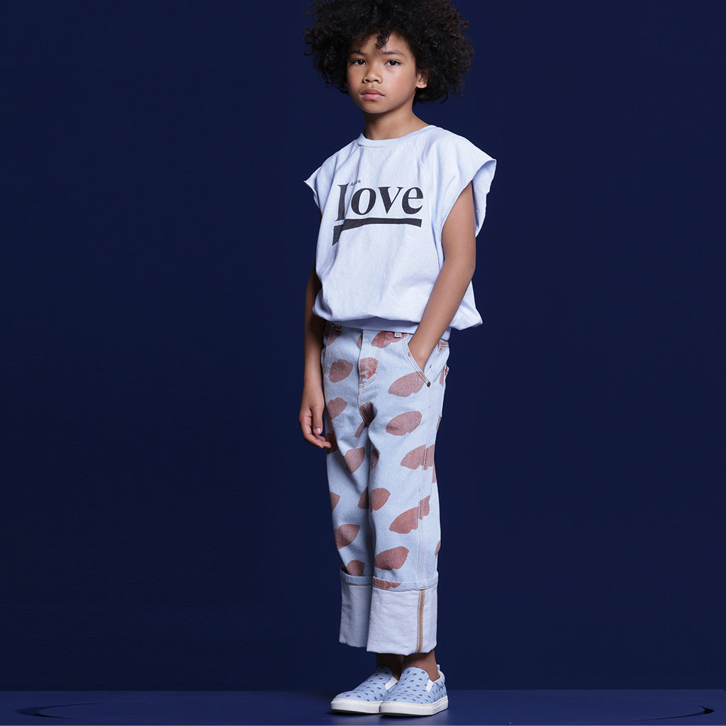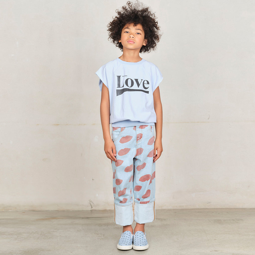 Hellblaues Baumwolle Top von The Animals Observatory mit Love Schriftzug.