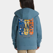 Zip-Hoodie für die kleineren Skater unter uns. Vorne skatendes Vans Logo, hinten drei grosse Skateboards