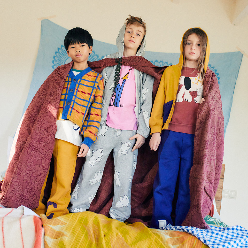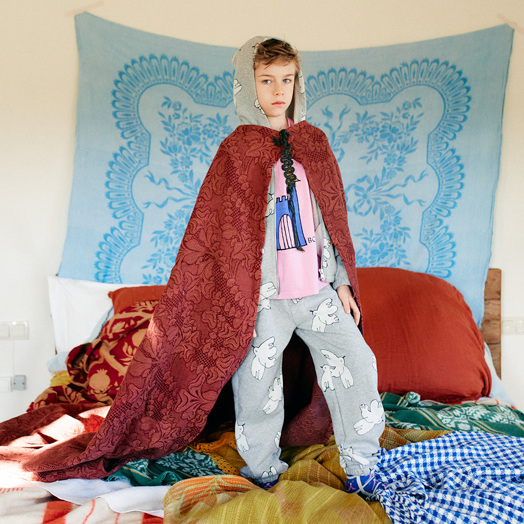 Schliesst die Augen und stellt euch die bekannten Märchen einmal anders vor. Die Bobo Choses AW24-Kollektion «Once Upon a Time» macht genau dies und ermutigt die Kinder, die Märchen der Gebrüder Grimm neu zu erfinden. Charakteren und Schauplätze zu mischen und neue Geschichten zu erdenken: Geschichten vom guten, lieben Wolf, vom bösen Prinzen, der schönen Hexe oder dem rechtschaffenen Piraten.