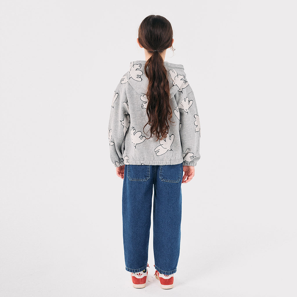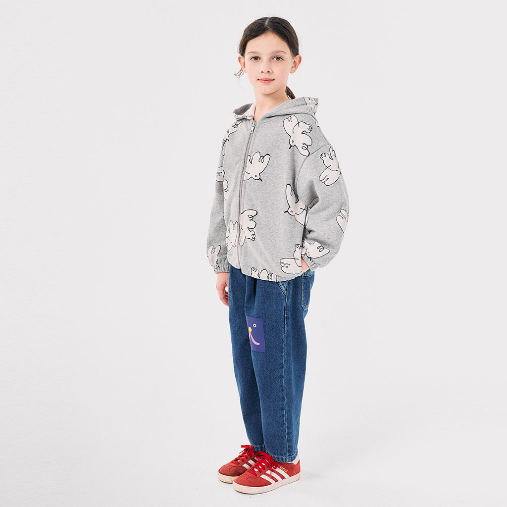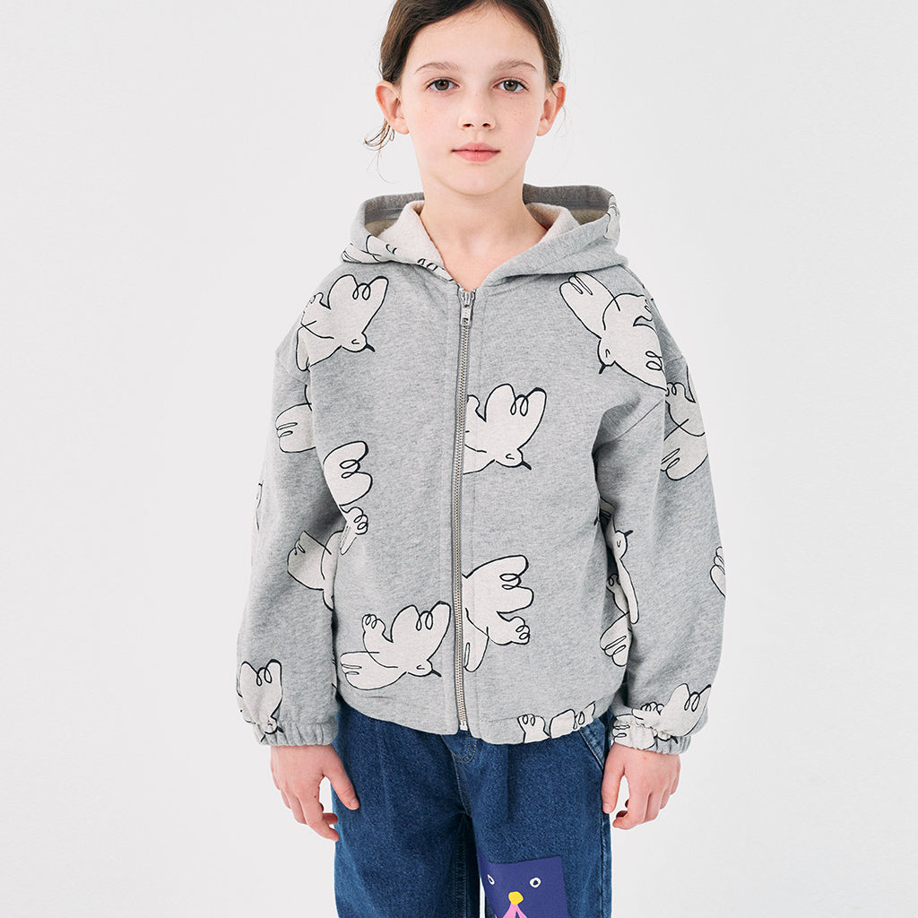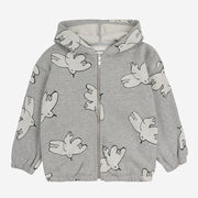 Hellgrauer Zip-Hoodie mit Allover Freedom Bird Print.
