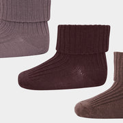 Die beliebten und super süssen kleinen Rippstrick-Socken gibt es jetzt auch im 3er-Pack. Die Socken sind in bester Merinowollqualität gefertigt. Die Söckchen haben eine breite Falte am Schaft, die zusammen mit der guten Passform dazu beiträgt, dass die Socken den ganzen Tag an ihrem Platz bleiben.